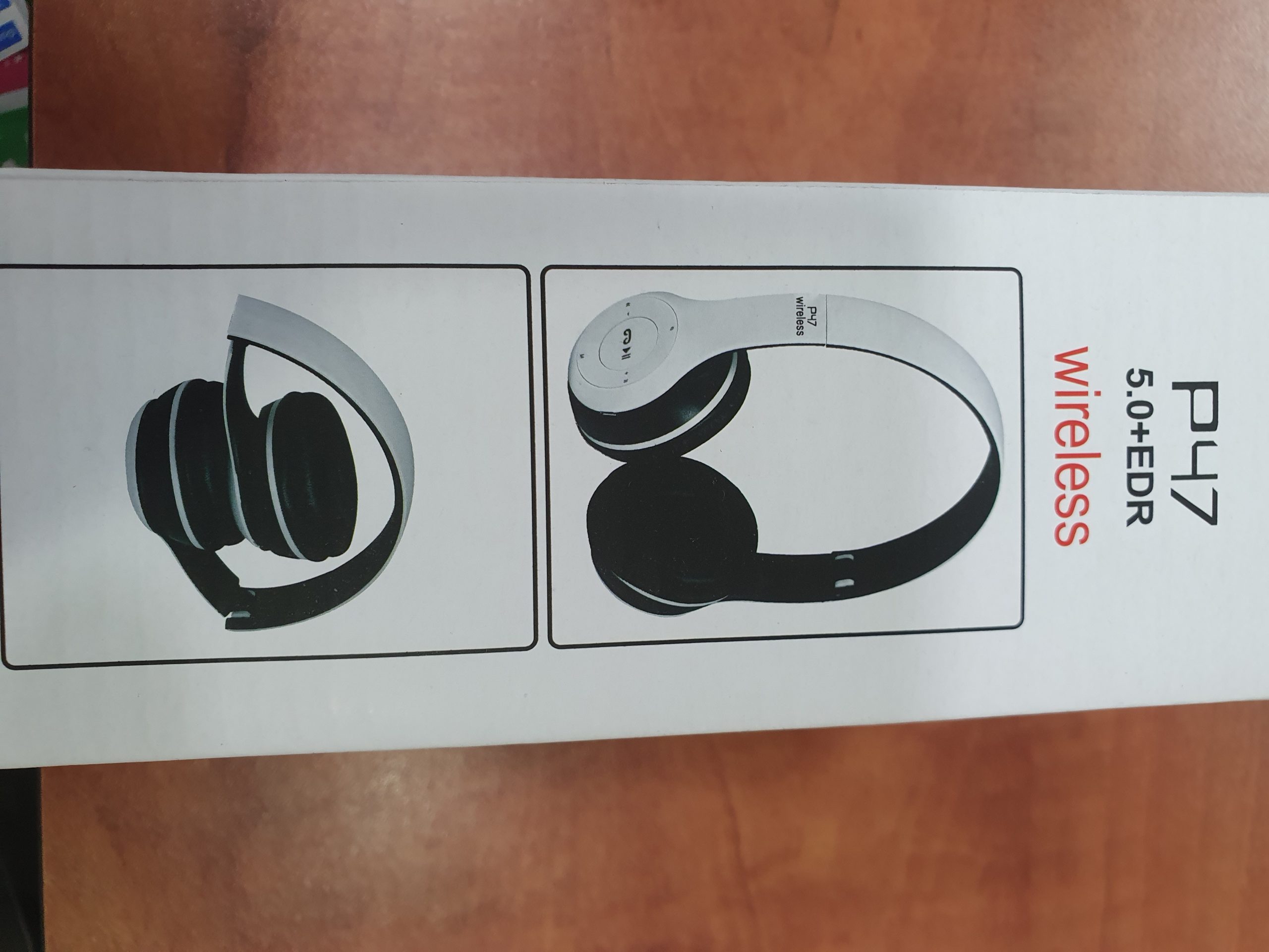 אוזניות בלוטות אלחוטיות P47. צבע לבן .כבל טעינה USB- 6 שעות זמן דיבור DC5V
